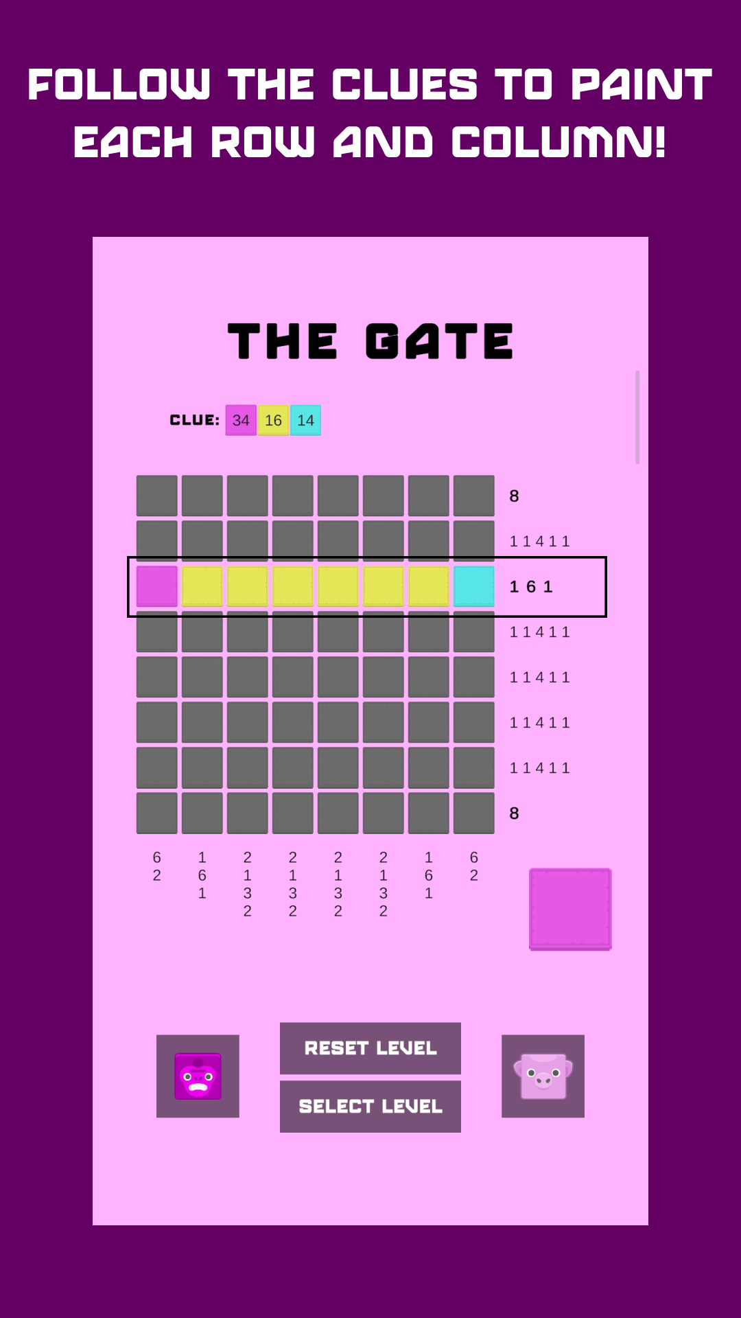 Each stage gives you numeric color clues, just like a nonogram, but with a minimalist twist. Tap the right Gorilla and Pig sequence to fill the grid and reveal the hidden color pattern!